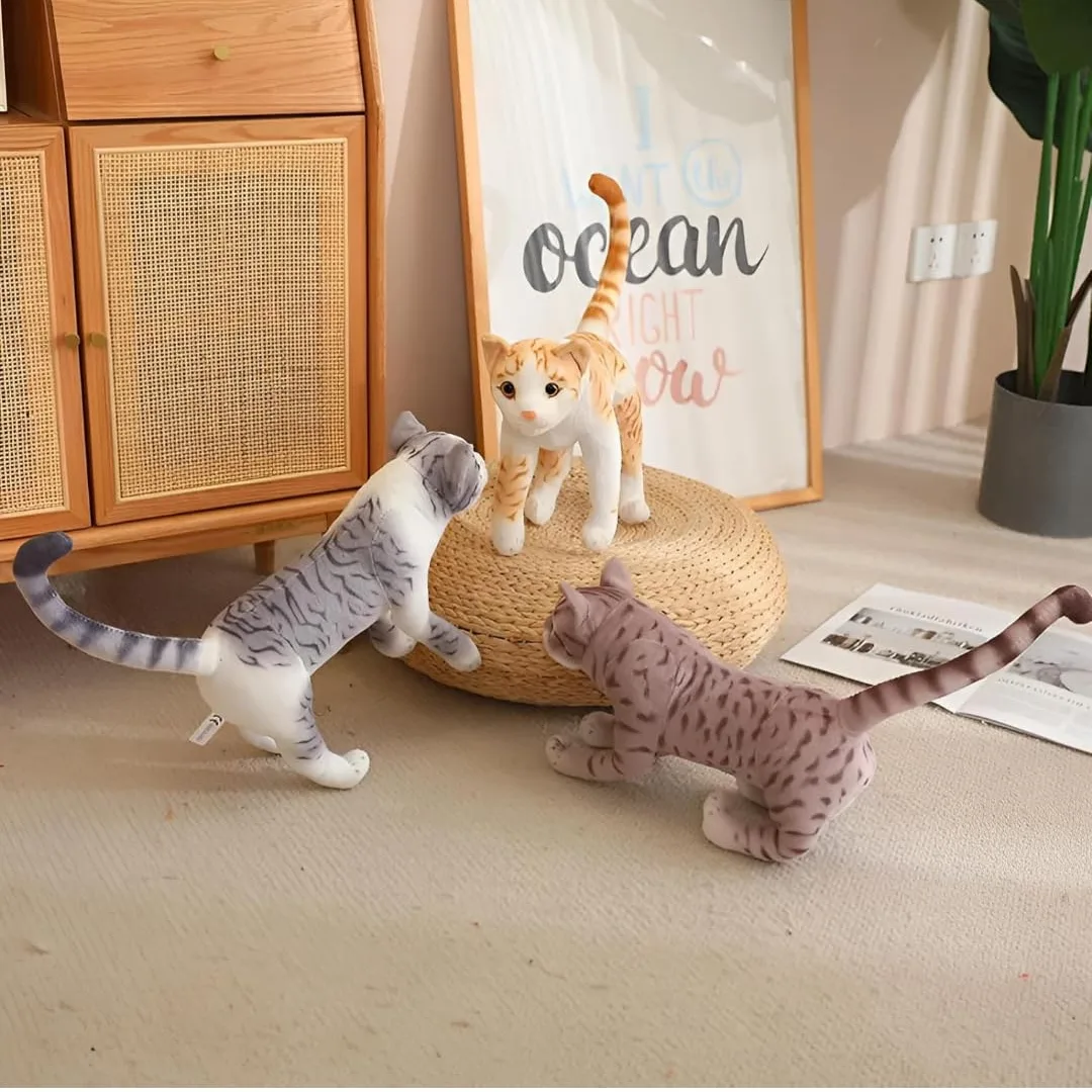 * hug feel good stuffed soft toys are perfect companion for children . * this cuddly cat made from soft and huggable material this give a comfort feel when close to kids . * the appearance of the cat looks realistic and helps to kids to identify the shape and look of the animal. * the size and shape comes a friendly and easy to carry anywhere when we go out with kids. * this toy primium look high matterial animal toy.